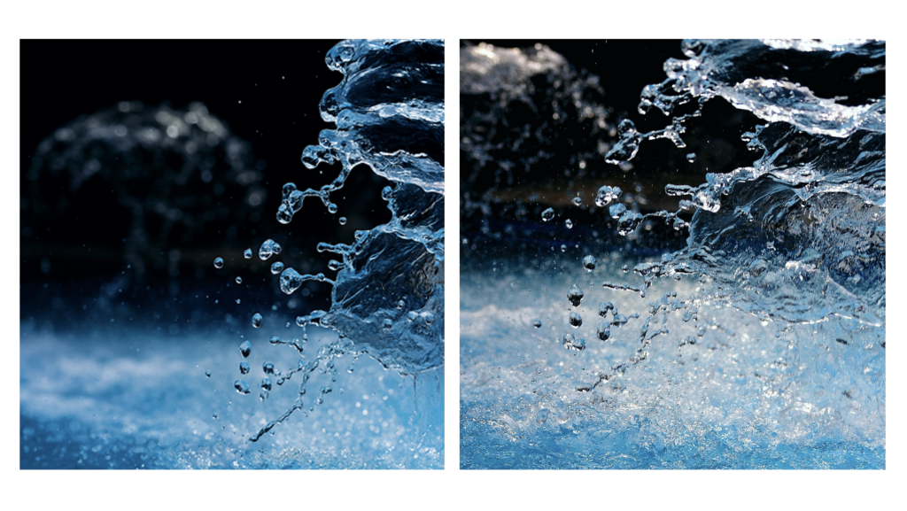 水しぶきが大きく舞い上がる瞬間を捉えた写真です。水の動きは極めて複雑で、飛び散る粒の大きさや軌道、光の反射の仕方など、自然現象ならではの不規則性が詰まっています。生成AIはこの“水のランダムな動き”を再現するのが難しく、しぶきの粒が均一すぎたり、光の反射が不自然に揃っていたり、動きの方向が矛盾していたりすることがあります。水しぶきのような瞬間的で複雑な現象は、AIの破綻が出やすいポイントです。答えは次の広告の下です!