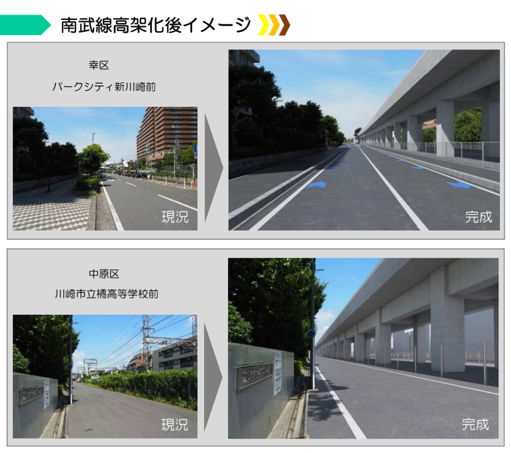 川崎市は「別線高架工法」を採用し、まず下り線を高架化して切り替え、その後上り線を高架化する方式を取ります。 これにより、運行への影響を最小限に抑えながら工事を進めることができます。