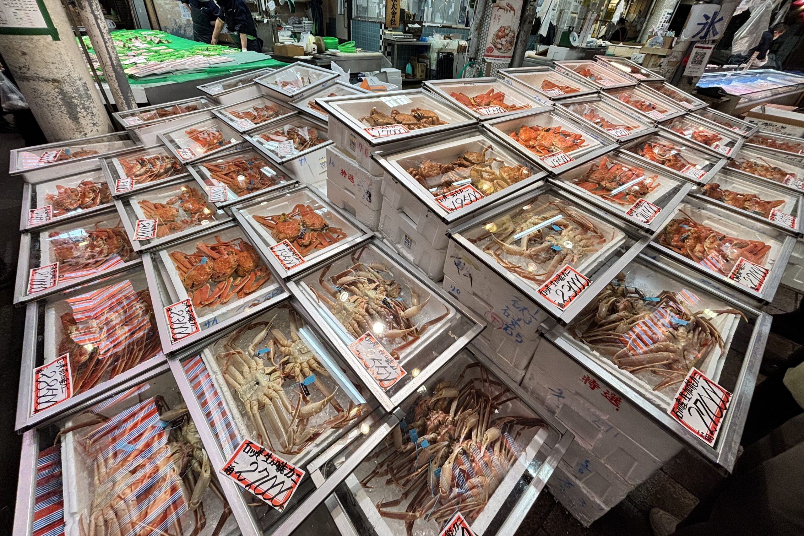 近江町市場は金沢駅から徒歩圏内の都心にあり、アクセスがとても便利です。 観光の合間に立ち寄りやすく、雨の日でもアーケードで安心して歩けます。