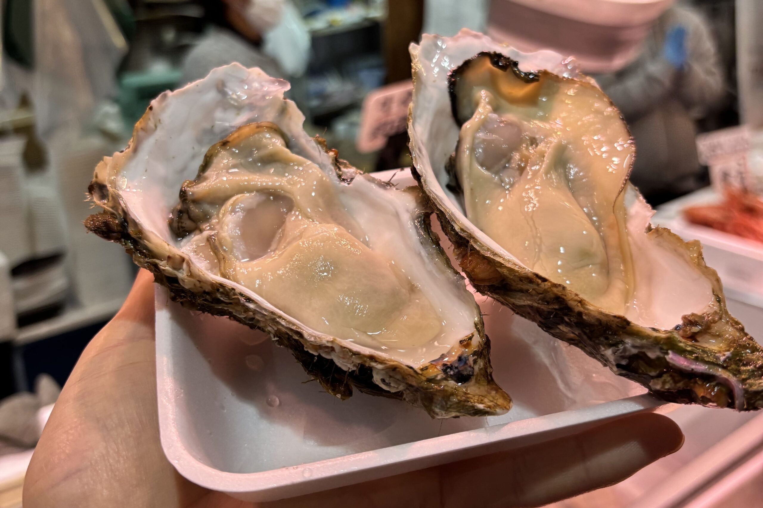 その場で殻を開けてくれるスタイルで、鮮度の良さが段違い。 ぷりぷりで濃厚な味わいは、市場でしか体験できない贅沢でした。