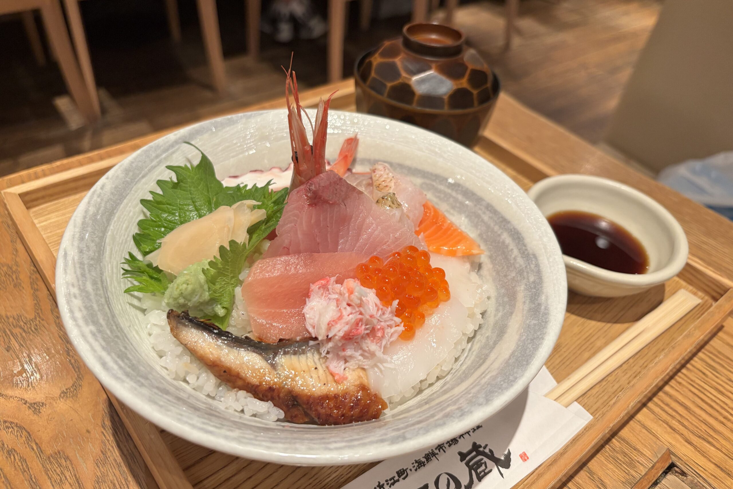 鮮度抜群のネタがぎっしり盛られた贅沢な丼。 どのネタも味が立っていて、食べ進めるほど満足感が増していきます。