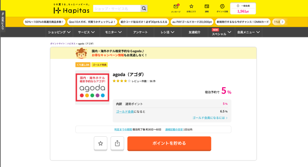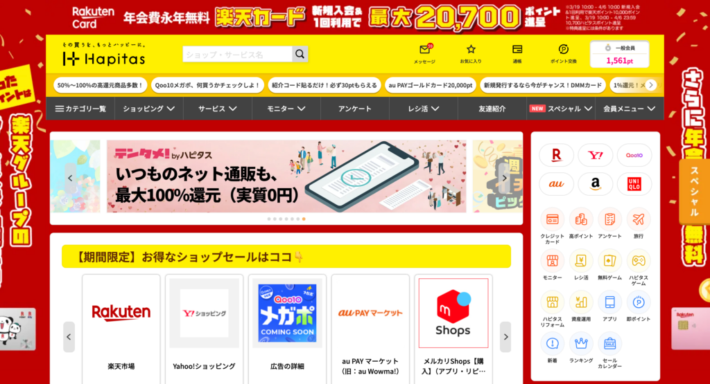 ハピタスは、ネットショッピングや旅行予約、クレジットカードの申し込みなどを いつも通りに使うだけでポイントが貯まる ポイントサイトです。