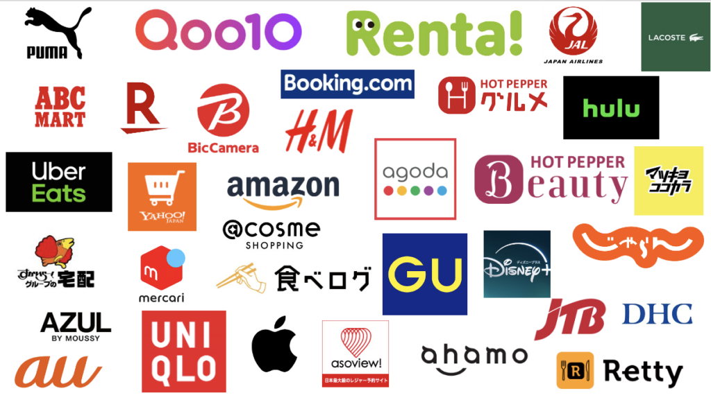 ハピタスならネットショッピングなんてこんなにたくさんの大手ブランドで還元可能。